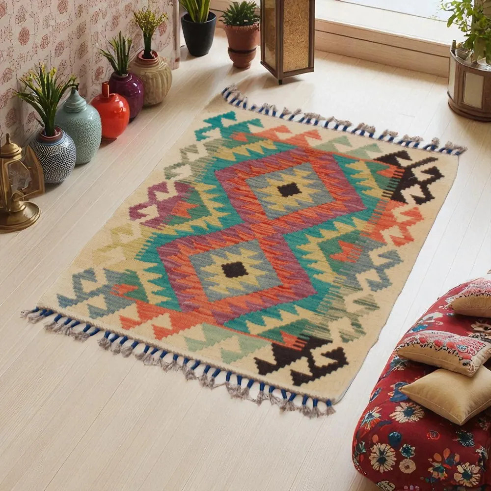 Ručně tkaný koberec Kilim je mistrovským dílem afghánského umění.