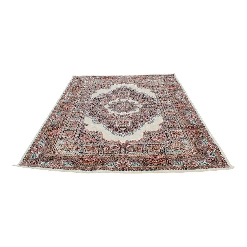 Akrylový perský koberec má podobné vlastnosti jako ručně tkaný vlněný koberec. Moli však akrylový koberec nepoškozují, což je výhodou i z hlediska použití. Akryl je nejodolnějším vláknem vůči slunečnímu záření a povětrnostním vlivům. Tepelná stálost a měkkost akrylových koberců je nejvíce srovnatelná s vlněnými koberci. Snadno se čistí a rychle schne. Zejména jeho nehořlavost z něj činí vynikající dekorační materiál. Používá se samostatně nebo jako směs, často se používá vedle vlny na pleteniny, svetry, svetry a nyní i na koberce. Akryl je syntetické vlákno s nízkou hustotou a vlněnou strukturou, které nežmolkuje, nesráží se a snadno se pere. Odolný strojově tkaný perský koberec s dlouhou životností za přijatelnou cenu. Dodejte svému domovu jedinečný nádech jako koberec do obývacího pokoje nebo ložnice.