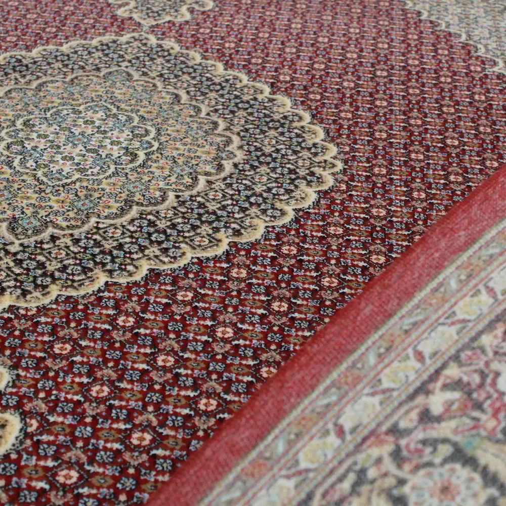 Tento koberec, inspirovaný tradičními íránskými vzory, kombinuje estetiku ručně tkaných koberců s precizností strojové výroby. S hustotou téměř milionu uzlů na metr čtvereční a hmotností přibližně 18 kg je tento koberec vynikající volbou pro jakýkoli interiér. Akryl, z něhož je koberec vyroben, je antialergenní a má skvělé tepelné izolační vlastnosti, díky čemuž je vhodný i pro místnosti s podlahovým vytápěním. Tento perský koberec z Íránu poskytuje bohatou a harmonickou barevnou paletu, která zvyšuje pohodlí a útulnost vašeho domova. Je ideální pro obývací pokoje i kanceláře a díky své odolnosti si dlouhodobě zachovává svou krásu a kvalitu.