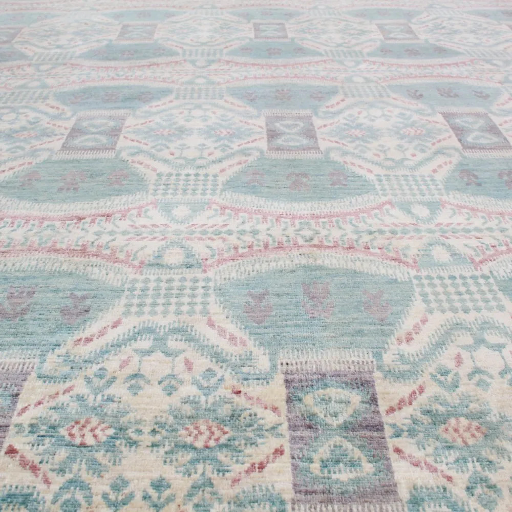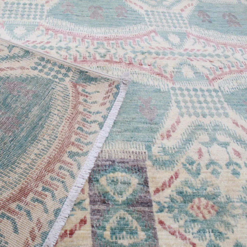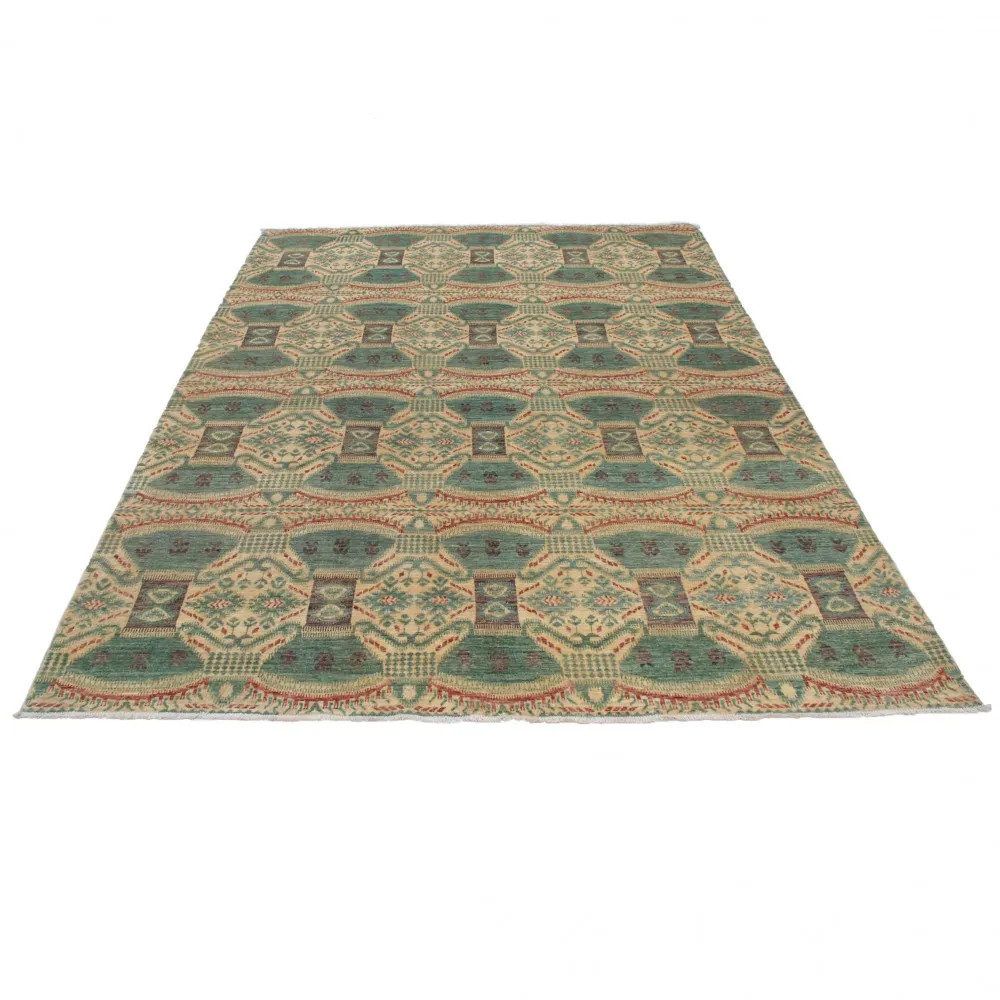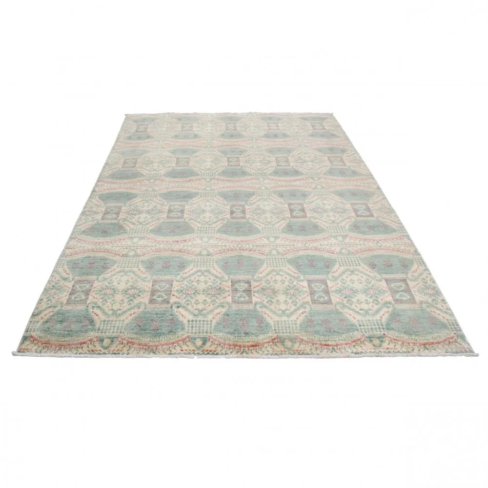Tento koberec je ručně vázaný v Afghánistánu a je vyroben ze 100% vlny s bavlněnou osnovou. Jeho moderní vzory a barvy dodávají místnostem jedinečnou atmosféru. Díky své tloušťce 7-9 mm a váze 2,5 kg/m² je nejen esteticky přitažlivý, ale také praktický. Vlněný koberec Aikat je navíc barven přírodními barvivy, což zajišťuje dlouhodobou stálost barev. S rychlou dopravou po Česku, kterou nabízíme, můžete tento skvost mít doma během 2-3 pracovních dnů. Pokud hledáte koberec, který dodá vašemu interiéru teplo a styl, je tento koberec ideální volbou.