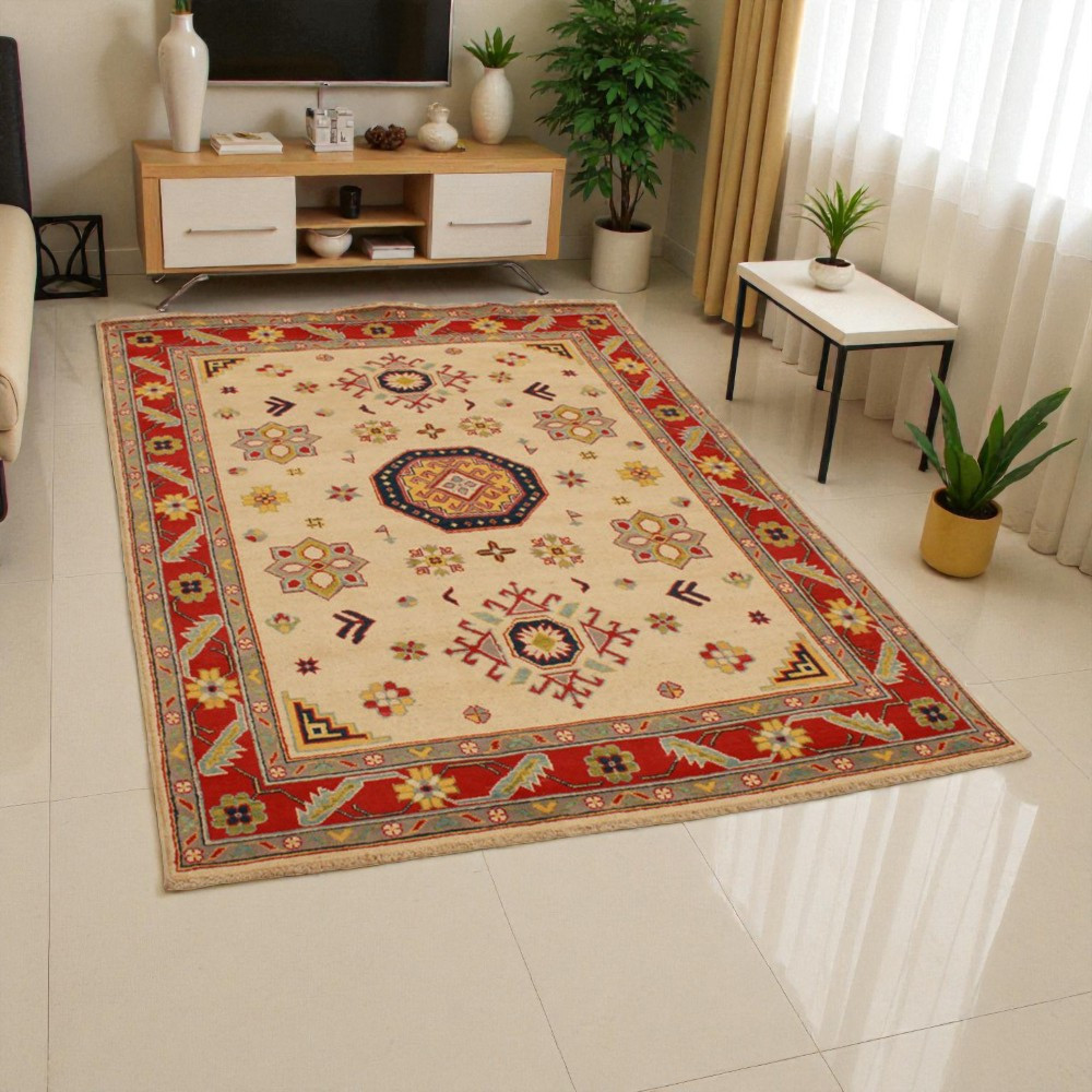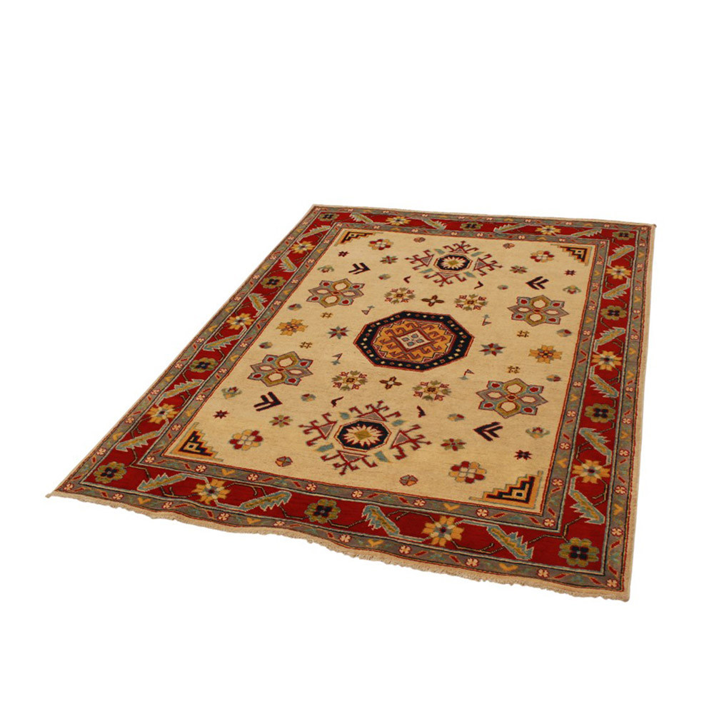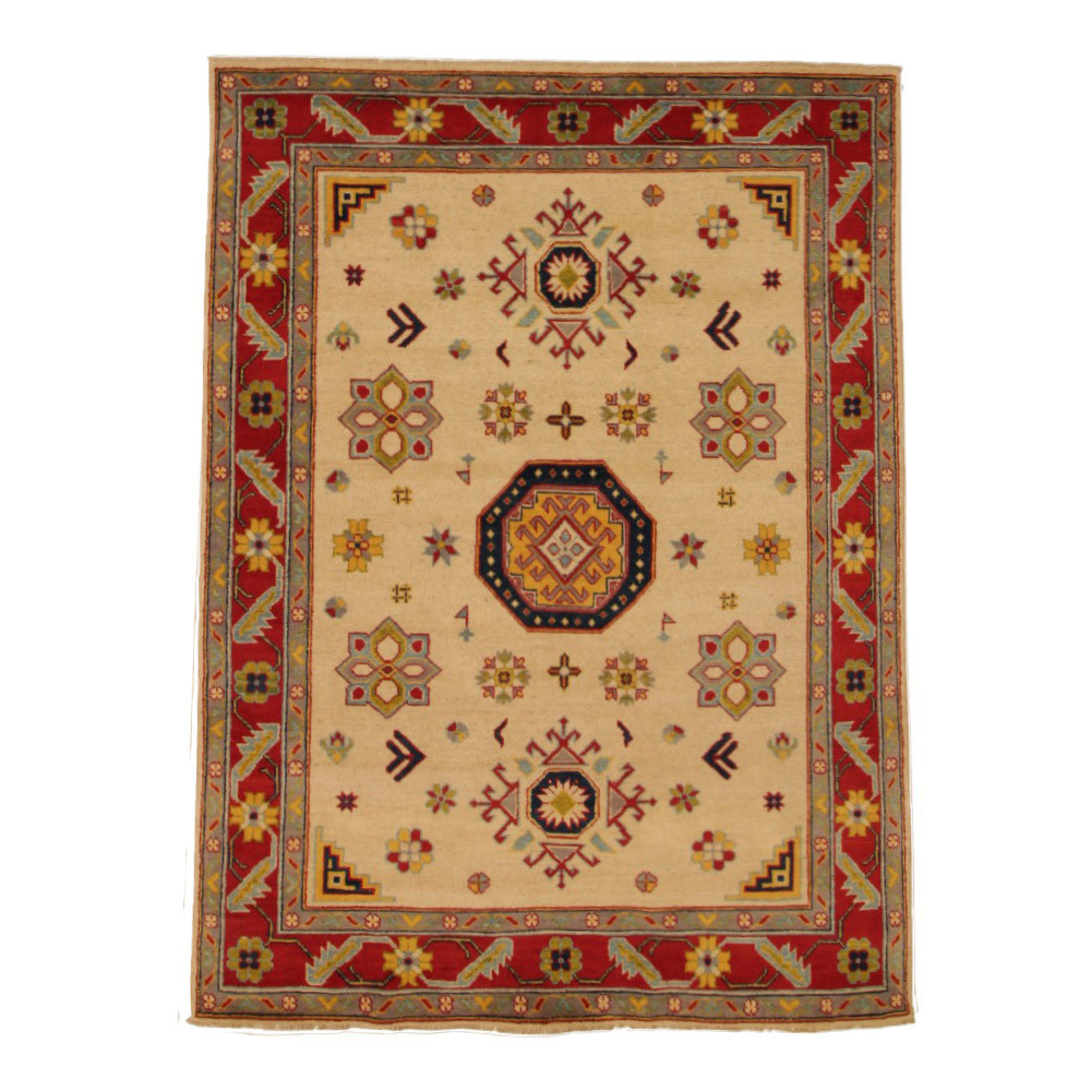 Koberec Kazak se stal oblíbeným především díky svým teplým a zároveň světlým barvám. Interiéroví designéři jej nejčastěji doporučují do klasicky zařízených domácností. Jeho vzory jsou inspirovány ruskými geometrickými vzory. Říká se mu jen Kazak koberec, ale je to afghánský koberec. Použitá vlna je barvena přírodními rostlinnými barvivy. Orientální koberec Kazak se vyznačuje výraznou barevností. Jeho výhodou je, že díky jasným barvám nezatemňuje atmosféru místnosti. Jako koberec do obývacího pokoje dokonale ladí s barvami pohovky nebo konferenčního stolku. Jako koberec do ložnice se používá také na obou stranách postele. V tomto případě stačí, když barvy koberců ladí. Každý krok při výrobě koberce je 100% ručně vázaný. Díky své odolnosti může být položen i v těch nejrušnějších obytných místnostech. Technika uzlování orientálních koberců Kazak se nazývá Gheordes, což znamená dvojité uzlování. Po dokončení se koberec čtyřikrát vypere a poté se nechá uschnout na slunci. Neobsahuje žádné alergenní látky.