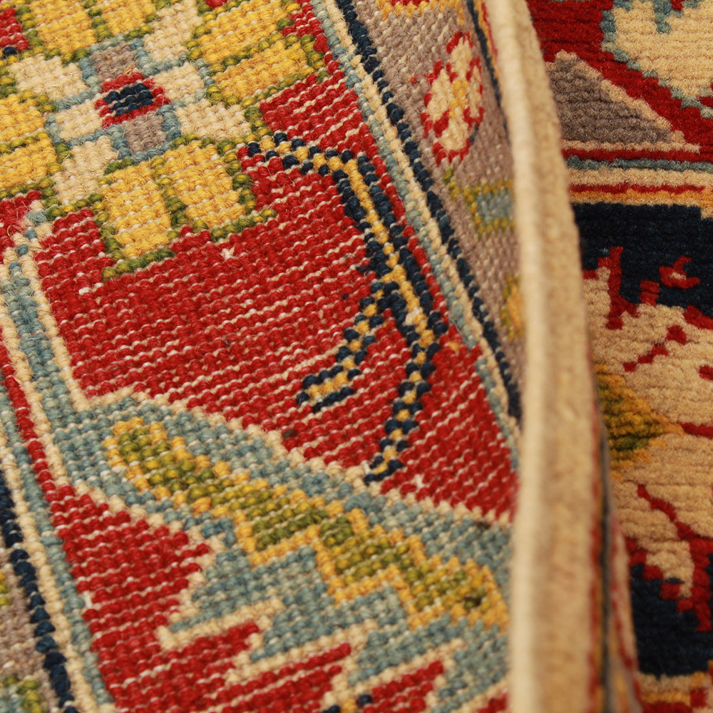 Hledáte barevný orientální koberec? Pak si prohlédněte tento koberec Kazak, který vás uchvátí svými krásnými hravými barvami. Tento koberec Kazak je odolný, snadno se čistí a vysává. Nejlépe se hodí do místností s klasickým interiérem. Jelikož se jedná o vícebarevný orientální koberec, snadno jej sladíte s barvami nábytku nebo jiných textilií. Tento koberec Kazak se čtyřikrát pere a suší na slunci. Neobsahuje žádné alergenní látky. Lze jej použít i v místnostech s podlahovým vytápěním, ale v tomto případě se doporučuje vysávat pod kobercem, aby se zabránilo molům. Barvy koberce Kazak pocházejí z rostlin vyskytujících se v přírodě. Koberce Kazak se vyrábějí převážně v Afghánistánu nebo v Afghánci obývaných částech Pákistánu. Jelikož se jedná o odolný koberec, lze jej použít i v těch nejrušnějších obytných místnostech. Obývacímu pokoji dodá eleganci a prestiž. Koberec Kazak je vyroben ze 100% afghánské vlny. Vyznačuje se především geometrickými vzory. Jedná se o skutečně kvalitní ručně vázaný koberec.