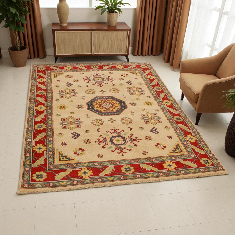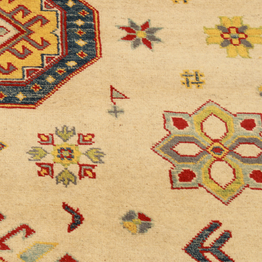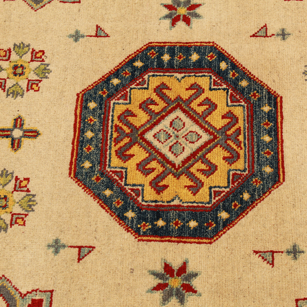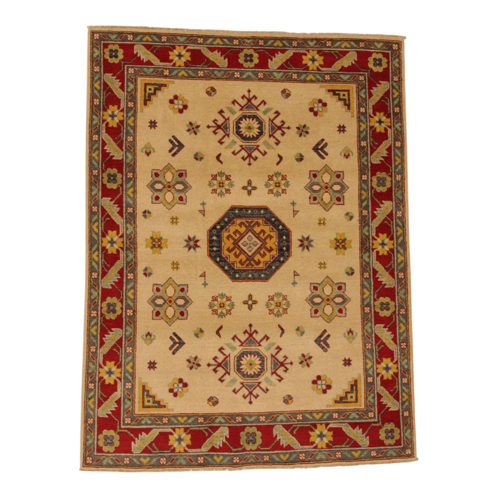 Koberec Kazak se stal oblíbeným především díky svým teplým a zároveň světlým barvám. Interiéroví designéři jej nejčastěji doporučují do klasicky zařízených domácností. Jeho vzory jsou inspirovány ruskými geometrickými vzory. Říká se mu jen Kazak koberec, ale je to afghánský koberec. Použitá vlna je barvena přírodními rostlinnými barvivy. Orientální koberec Kazak se vyznačuje výraznou barevností. Jeho výhodou je, že díky jasným barvám nezatemňuje atmosféru místnosti. Jako koberec do obývacího pokoje dokonale ladí s barvami pohovky nebo konferenčního stolku. Jako koberec do ložnice se používá také na obou stranách postele. V tomto případě stačí, když barvy koberců ladí. Každý krok při výrobě koberce je 100% ručně vázaný. Díky své odolnosti může být položen i v těch nejrušnějších obytných místnostech. Technika uzlování orientálních koberců Kazak se nazývá Gheordes, což znamená dvojité uzlování. Po dokončení se koberec čtyřikrát vypere a poté se nechá uschnout na slunci. Neobsahuje žádné alergenní látky.